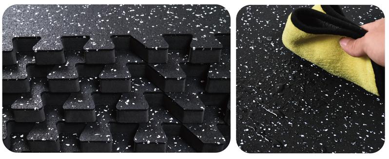 • [Effortless to Maintain]: Crafted from High-Density EVA Foam, these tiles minimize noise and vibration, allowing quiet and comfortable workouts. The waterproof feature makes cleaning a breeze with a damp cloth. Ideal for yoga, benches, workouts, treadmills, crossfit, kettlebells, cardio, and more.