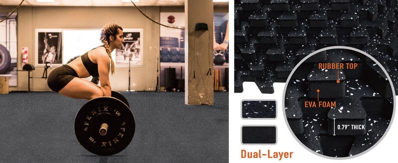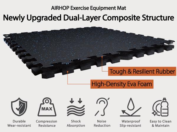 • [Upgraded Dual-Layer Design]: Concerned about your equipment scratching the floor during workouts? Our 2in1 Rubber Top EVA Foam Exercise Gym Mats are crafted to solve this issue. The textured rubber top layer, combined with a high-density EVA foam bottom layer, seamlessly creates a non-slip tough surface with excellent shock absorption.